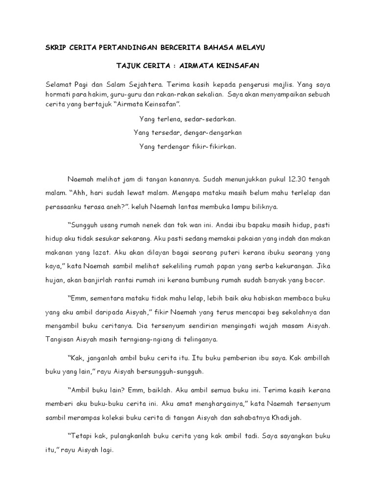 Skrip Cerita Pertandingan Bercerita Bahasa Melayu Pdf